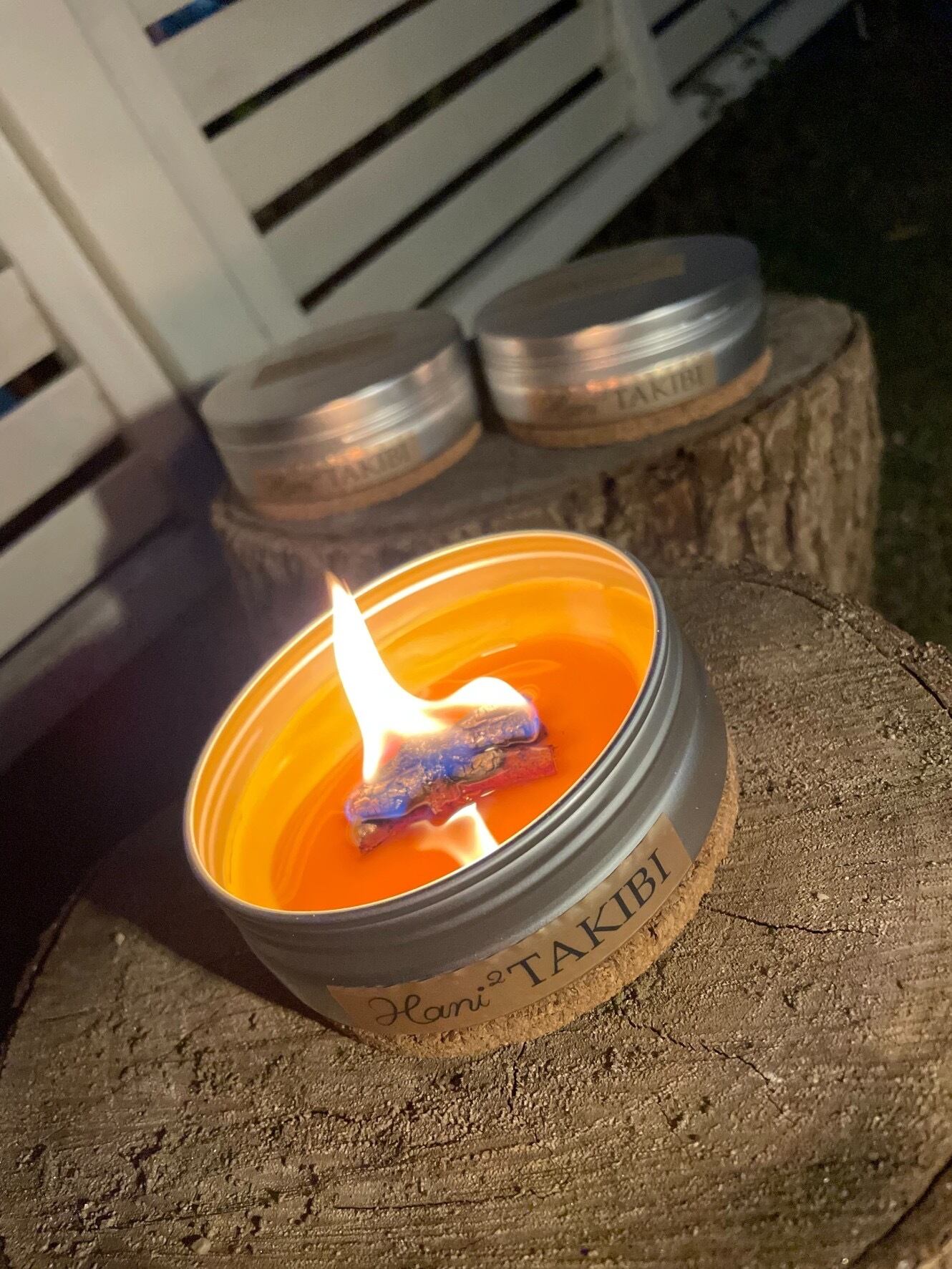 養蜂家が作った蜜蝋焚火キャンドルです。
