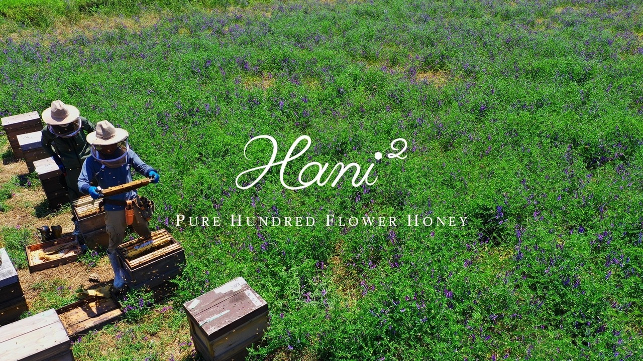 ハニハニの花畑では、田植え前までミツバチたちがヘアリーベッチの花から蜜を集めています。このヘアリーベッチは、収穫後に土に還すことで、緑肥としてお米の成長を支えます。当社では、化学肥料を10年以上使用しておらず、ヘアリーベッチ肥料100%